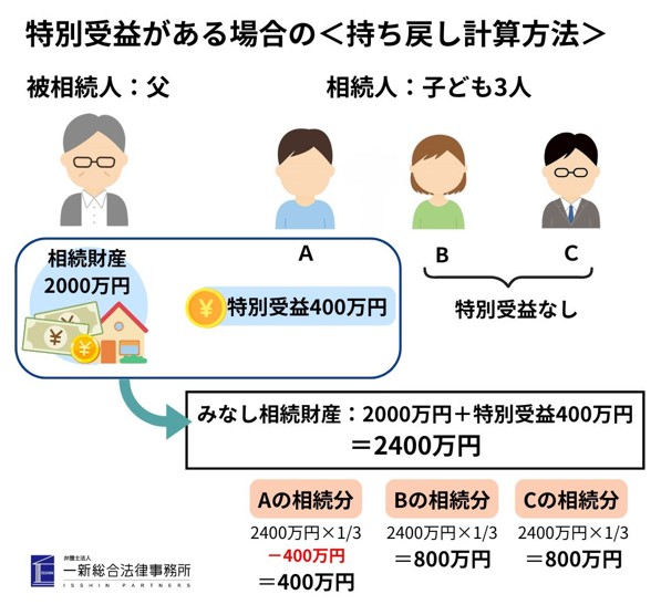 こうすることで、特別受益を得た相続人とそうでない相続人の相続分についてバランスを調整します。