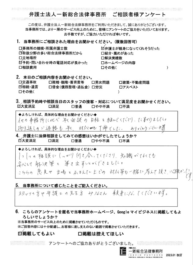 相続・遺言を長岡事務所でご相談されたお客様の声をご紹介します